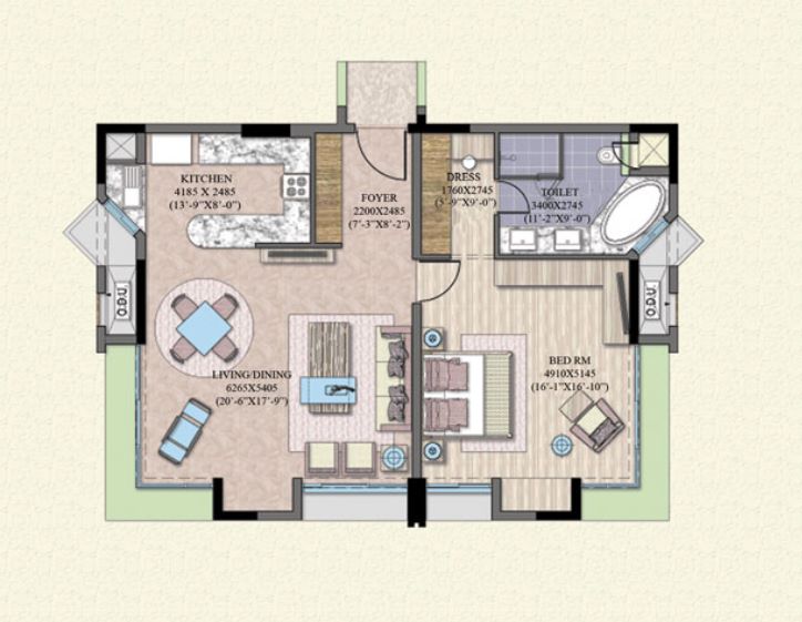 Elegant 1380 sqft 1BHK apartment in Crescent Court, Jaypee Greens, Greater Noida, offering modern amenities and a luxurious living experience.