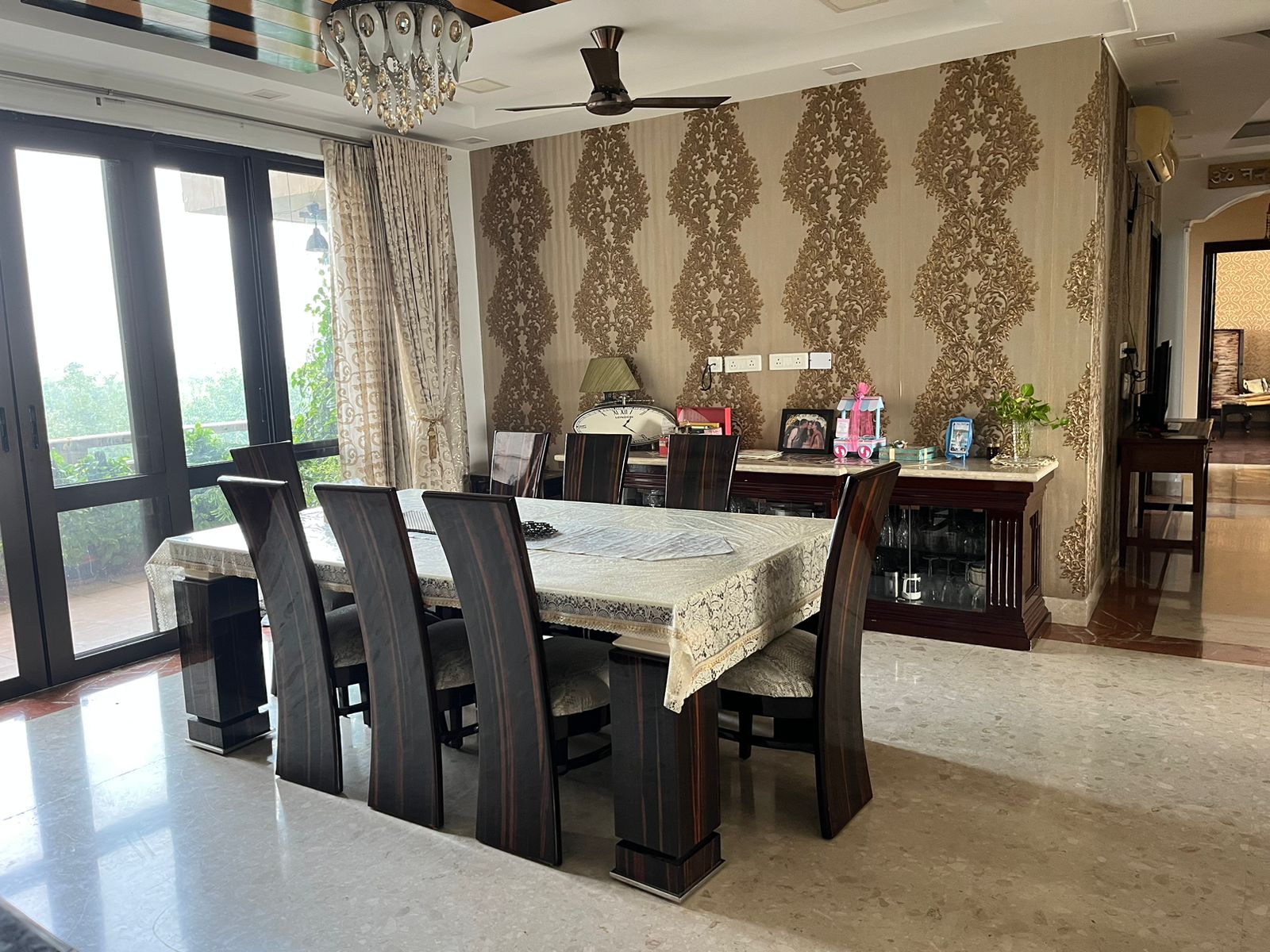 Every inch of this apartment reflects quality and grandeur. The spacious living and dining area opens up to wide balconies that overlook beautifully landscaped gardens and the lush green golf course. The bedrooms are large and thoughtfully designed with ensuite bathrooms, large windows for natural light, and ample closet space.